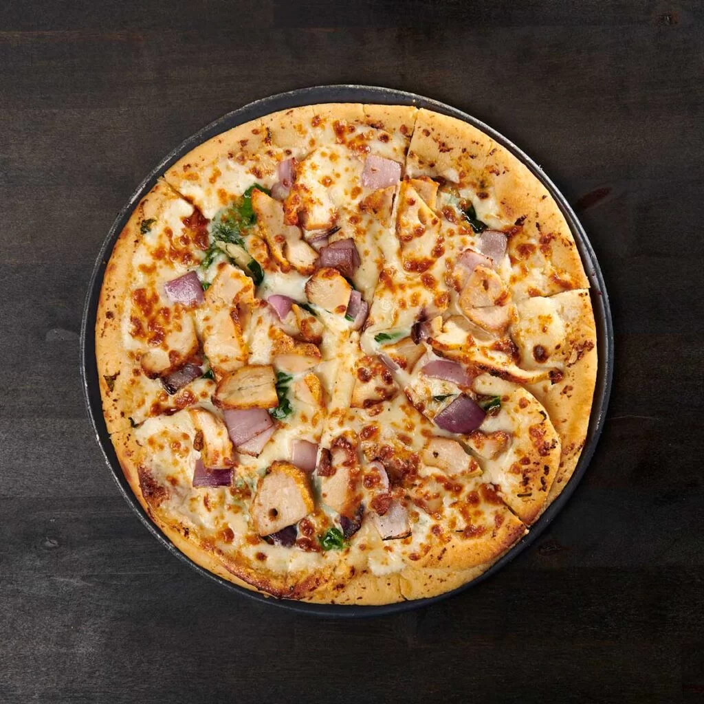 Garlic cilantro crust, garlic white sauce, house 5-cheese blend, tandoori chicken, spinach and onions