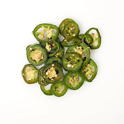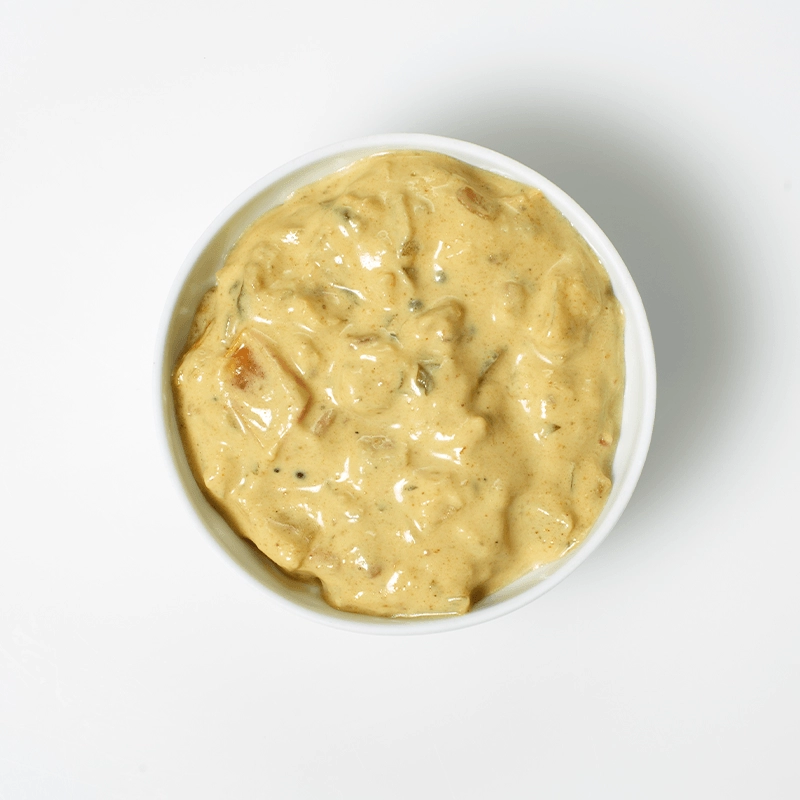 Firm non-melting cheese (aking to extra-firm tofy in texture) marinated in Greek yogurt & fresh gound spice, roasted jalapenos, with cocont curry sauce, whole milk provolone mozzarella blend (plain crust)