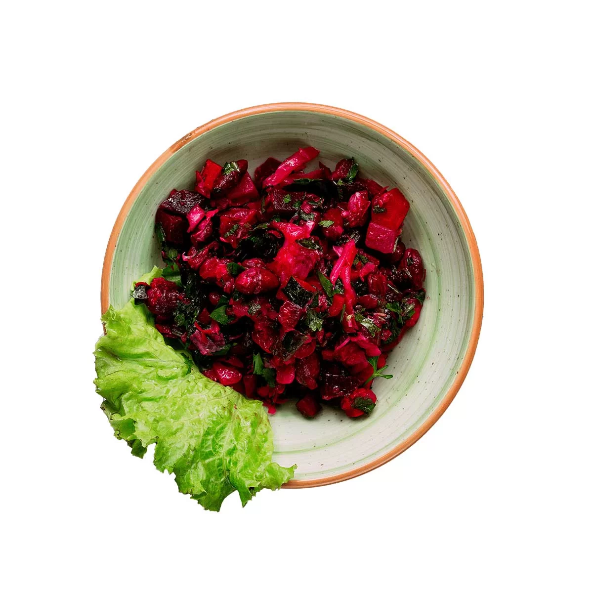 Experience the earthy delight of roasted beets, sweetened by golden raisin vinaigrette and nestled on a bed of fresh mixed greens. This salad is perfected with crumbled paneer cheese seasoned with aromatic Sambhar masala and candied pistachios for added crunch. Served with thinly sliced apples and plain tandoor-fired bread, each bite harmonizes beautifully in flavors and textures. Categories: All, Salads Tag: Salads